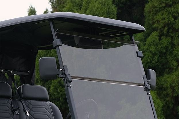 The all-in-one sound system includes Bluetooth, radio, USB, and aux inputs—perfect for a day on the course. LED headlights, brake lights, and indicators keep you visible, while the tinted split-front windscreen adds both style and protection. Other features such as the built-in golf ball and club washer, portable chilly bin, rear view and wing mirrors, lockable center console and colour-changing cupholders add the finishing touches to this impressive model.