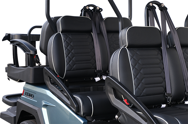 EuroCarts puts safety first. 3-point seatbelts for each occupant are ideal for rolling courses, road crossings, or some added peace of mind.