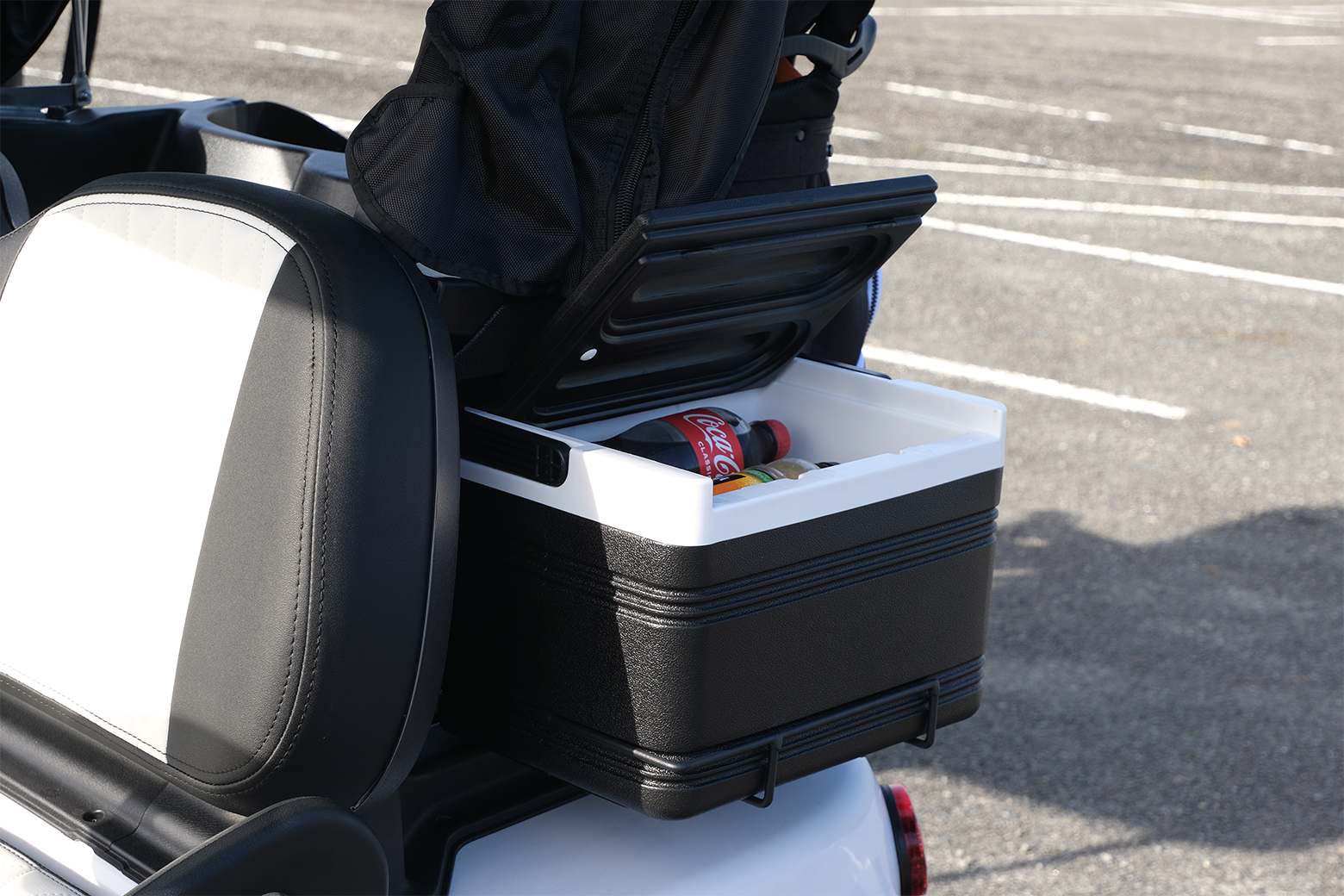 Forget having to take a break to grab a cold drink – take them with you instead! Enjoy cool drinks on-the-go, including away from the cart with the convenient carry-handle.