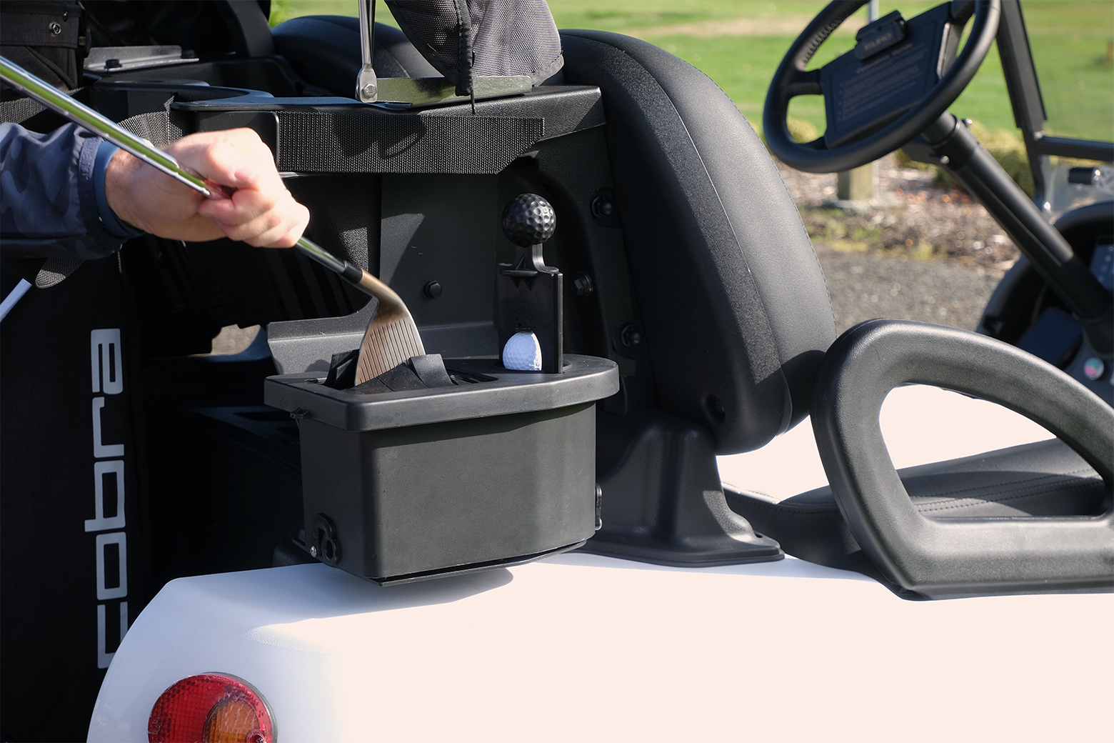 This convenient built-in unit simply needs to be topped up with water, then allows you to easily wash your clubs and balls as you play.