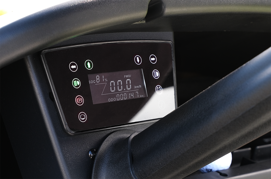 High-resolution display screen, featuring the cart speedometer, odometer, lighting systems, battery level, and more.