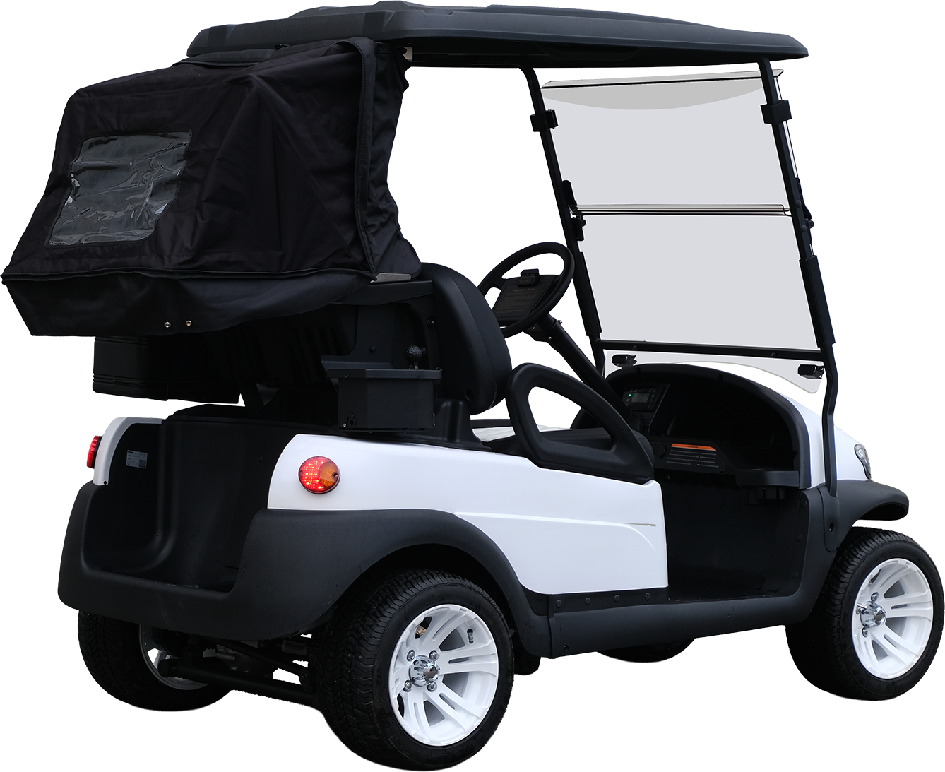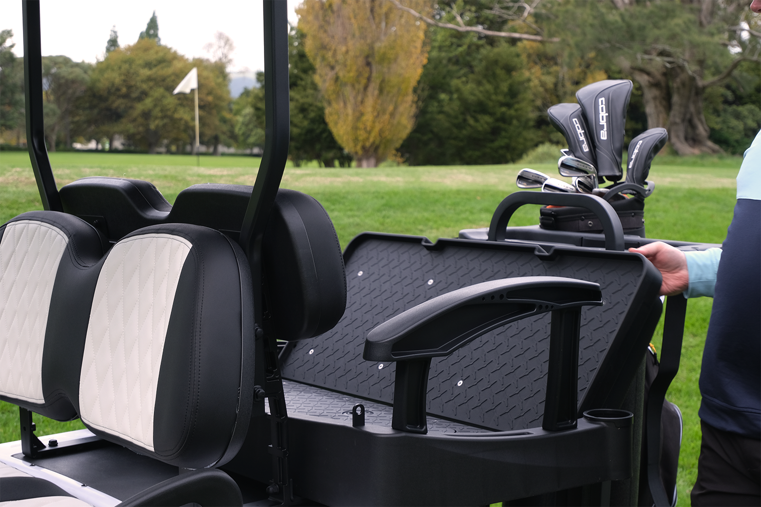 Essential visibility is covered by LED headlights and brake lights, while a tinted split windscreen adds flexibility with a touch of style. The rear golf bag stands offer access to your clubs on-the-go, protected by the weather with a fold-out rain cover*, while optional accessories such as the ball and club washer, sand bucket, portable chilly bin round out this smart, reliable model.