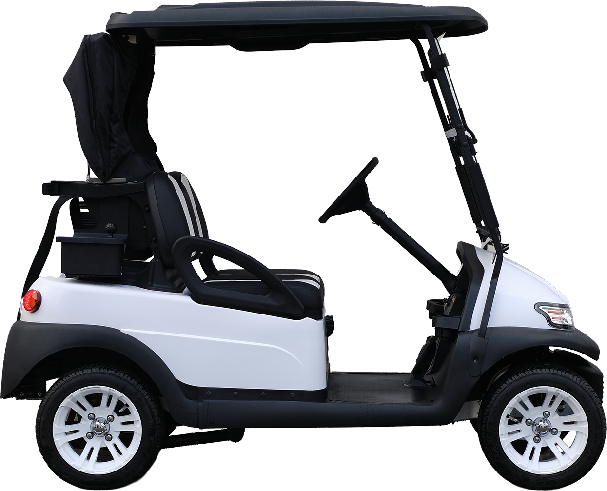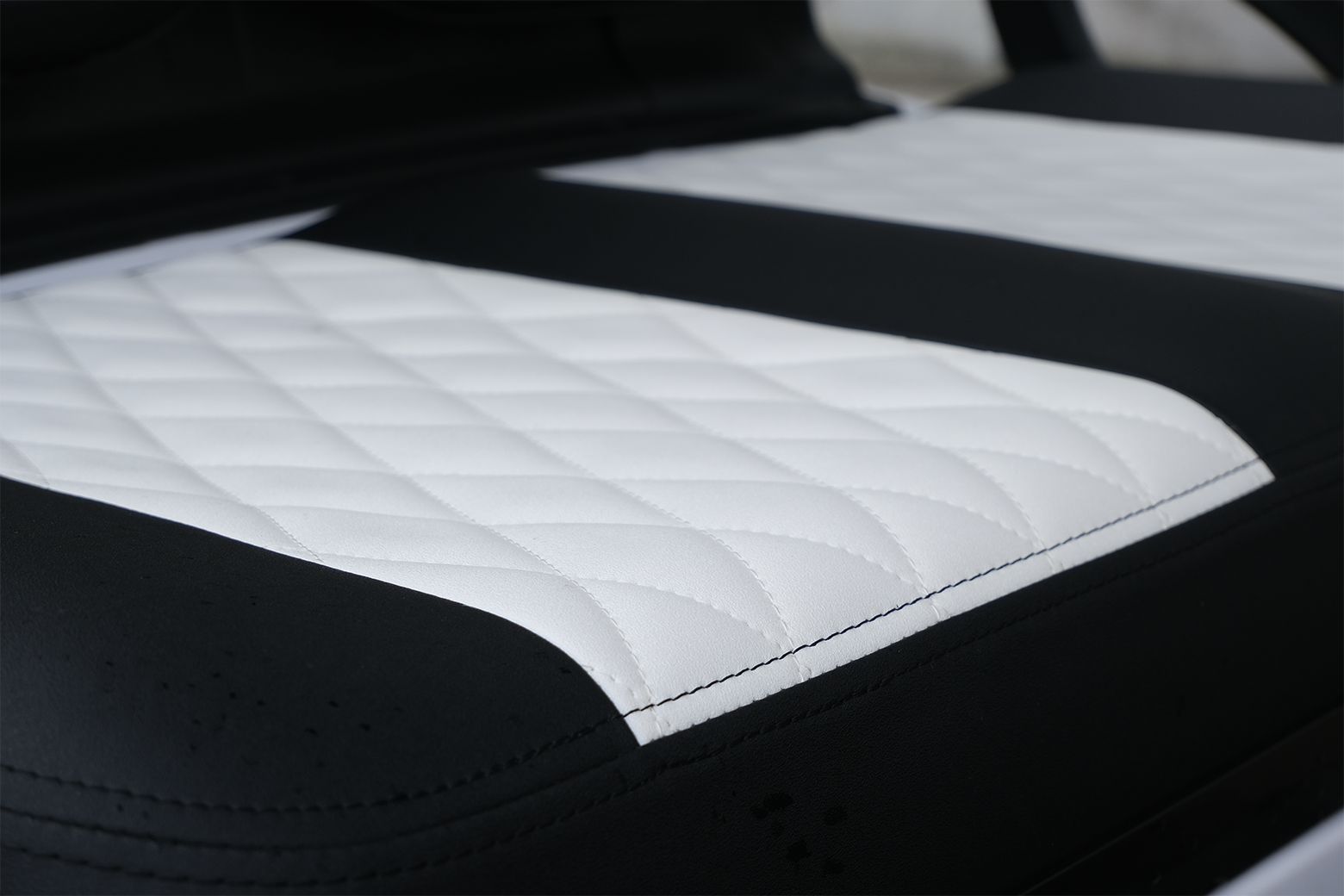 Enjoy a comfortable ride with premium cushioned seating. The sleek black and white detailing is guaranteed to stand out on the course.